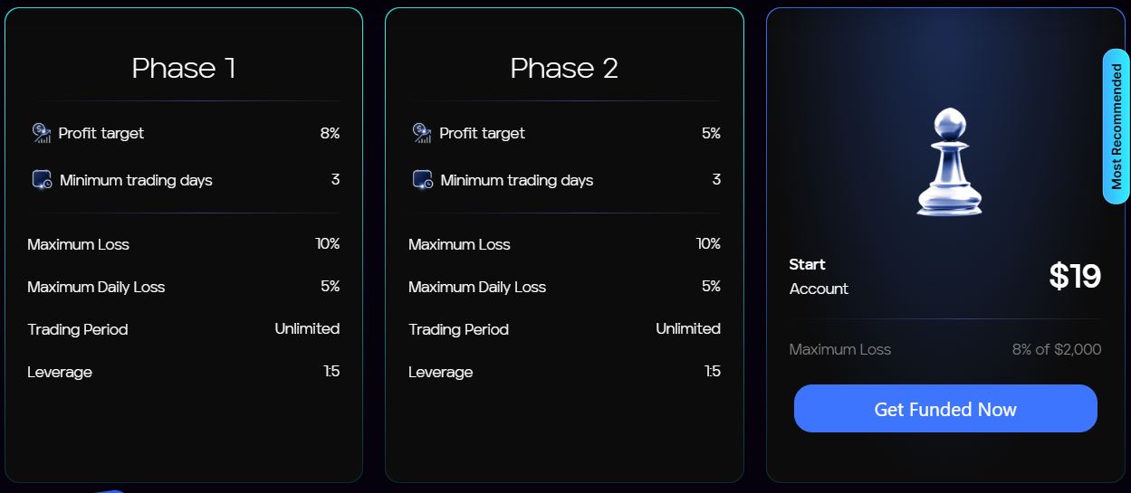 To become funded, traders must pass a two-phase challenge, designed to test:
