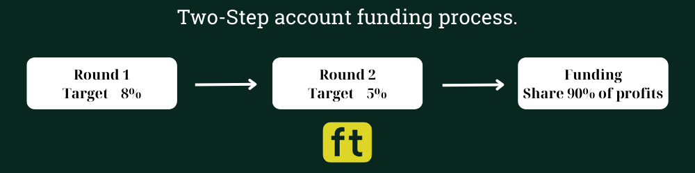 Once you pass the evaluation stage, you will receive a funding account. On the funding account there will be no profit target required.