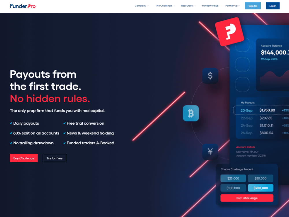 FunderPro is a proprietary trading firm actively seeking promising traders from across the globe to join their trading community.